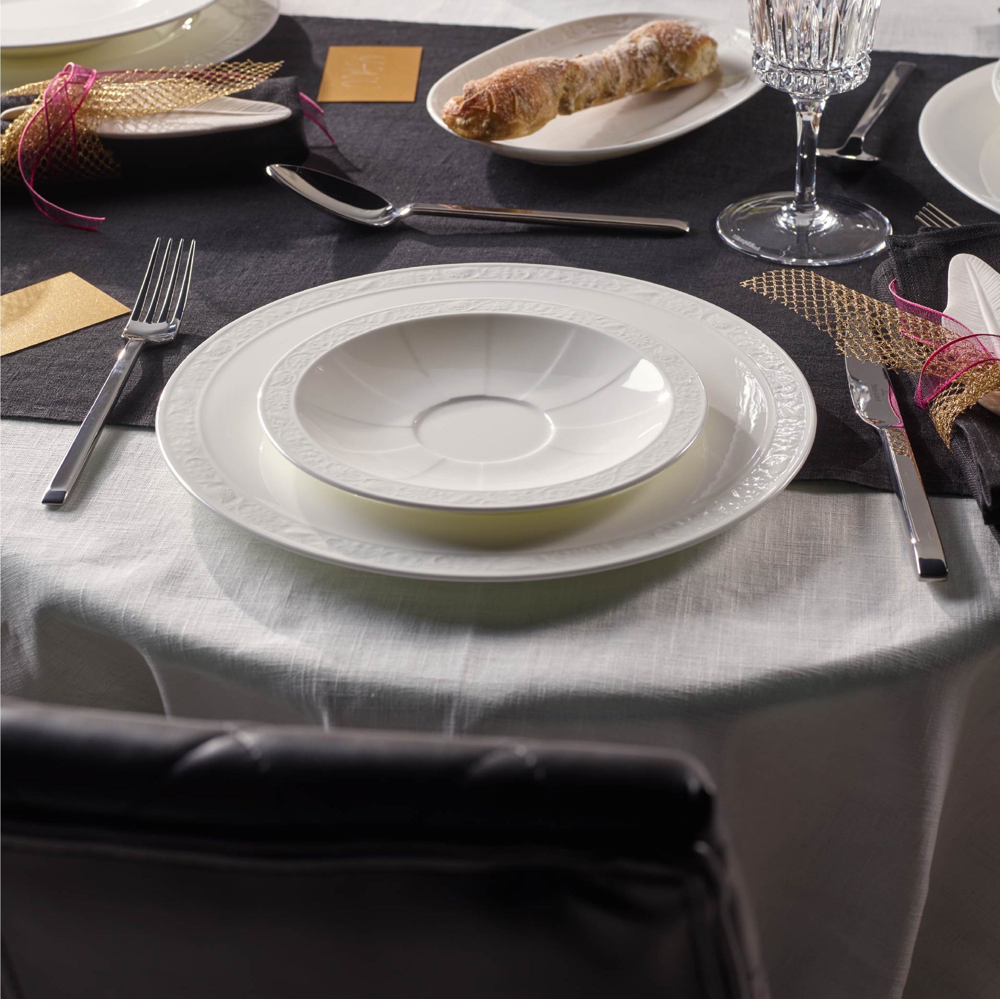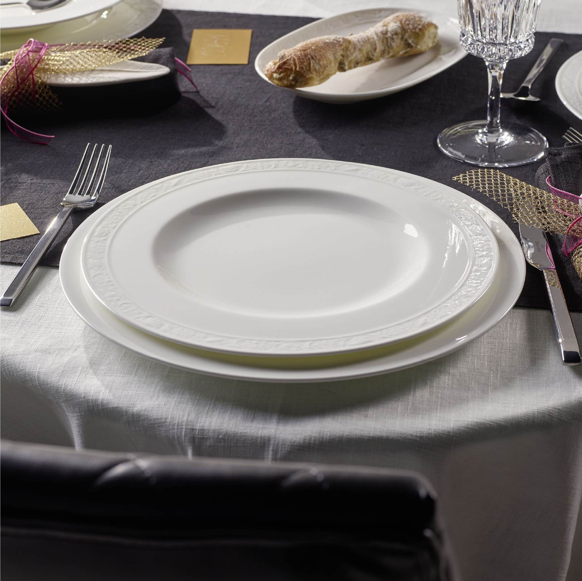 Inspired by traditional table settings yet tailored for modern living, White Pearl offers timeless charm with a contemporary touch. Its luminous finish and subtle relief pattern create a soft interplay of light, making every occasion, from breakfast to formal dinner, feel effortlessly elegant.